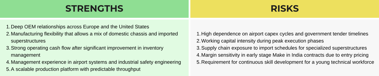 H1 FY26 proved the commercial readiness of this platform. The company delivered a four runway rubber removal machine to Airports Authority of India, a multifunction foam mist vehicle to Maruti Suzuki, a rapid intervention vehicle to Trivandrum Airport and two major refurbishments for Delhi and Goa airports. Each delivery reinforced the brand and expanded the capability map for future tenders.