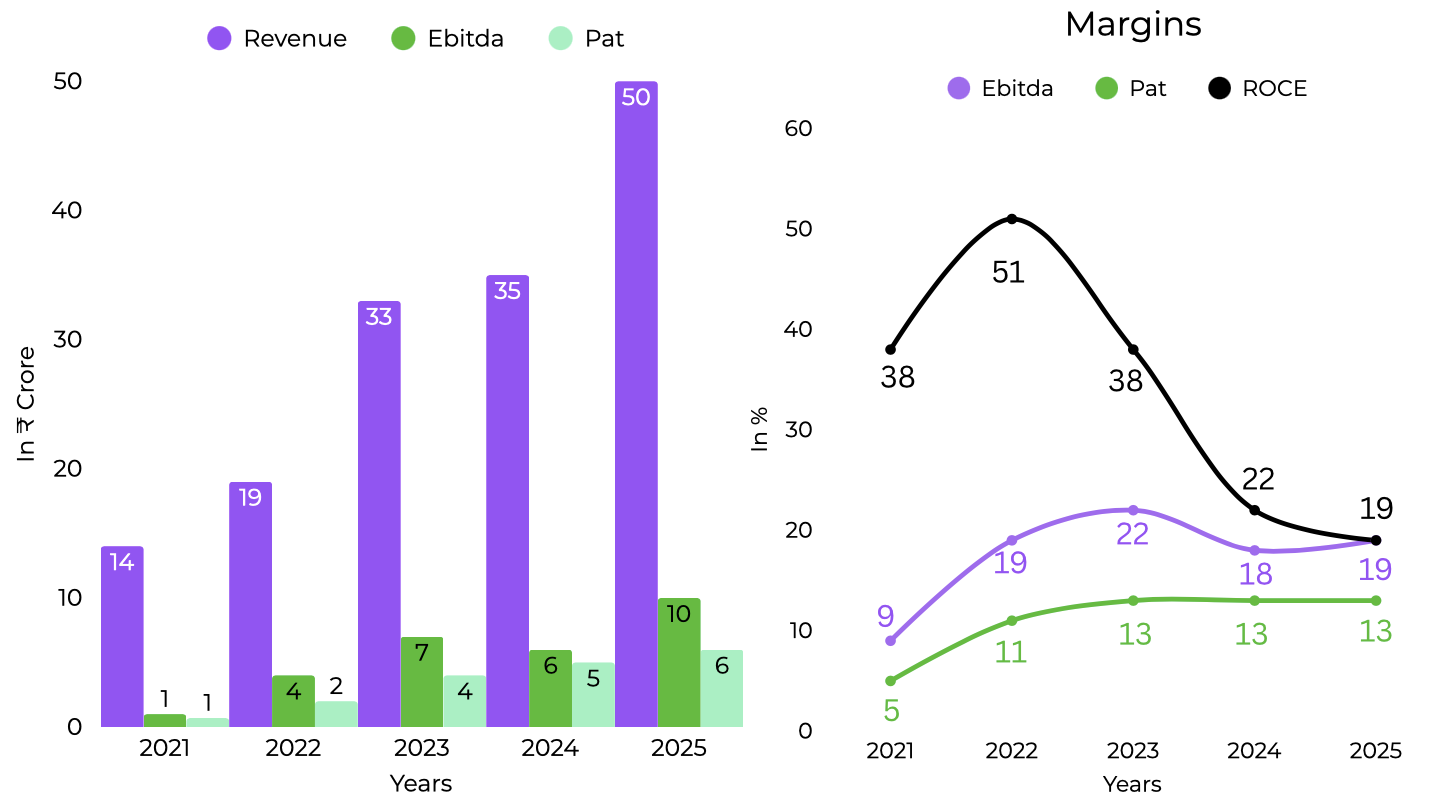 Capex remained disciplined. H1 FY26 involved a small office construction outlay of roughly one lakh and an investment of three point seven crore in demo and hire sweeping machines. The core manufacturing infrastructure created in FY25 is adequate for current scale. Future capex will focus on R and D capability, rented sheds for peak load and possible expansion into government allotted larger land.
