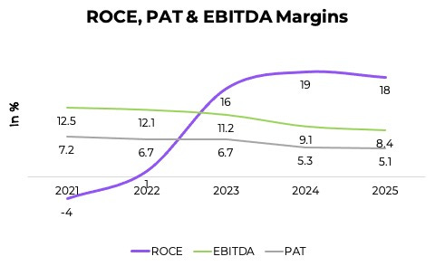 On the financial side, the company remains disciplined—capex is funded via internal accruals and term loans, with no equity dilution. With margin recovery expected, higher utilisation of expanded plants, and entry into new markets, SDBL aims to stabilize performance and resume its upward growth trajectory in FY26.