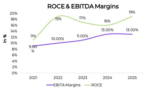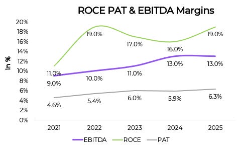 The capex was funded through a mix of internal accruals and long-term debt, primarily to support strategic acquisitions (IAC & Greenfuel). As of March 2025, long-term debt stood at ₹458 Cr, keeping the debt-to-equity ratio comfortable at 0.49x. With ₹322 Cr in free cash and strong operating cash flows, Lumax remains well-capitalized for its aggressive growth roadmap.