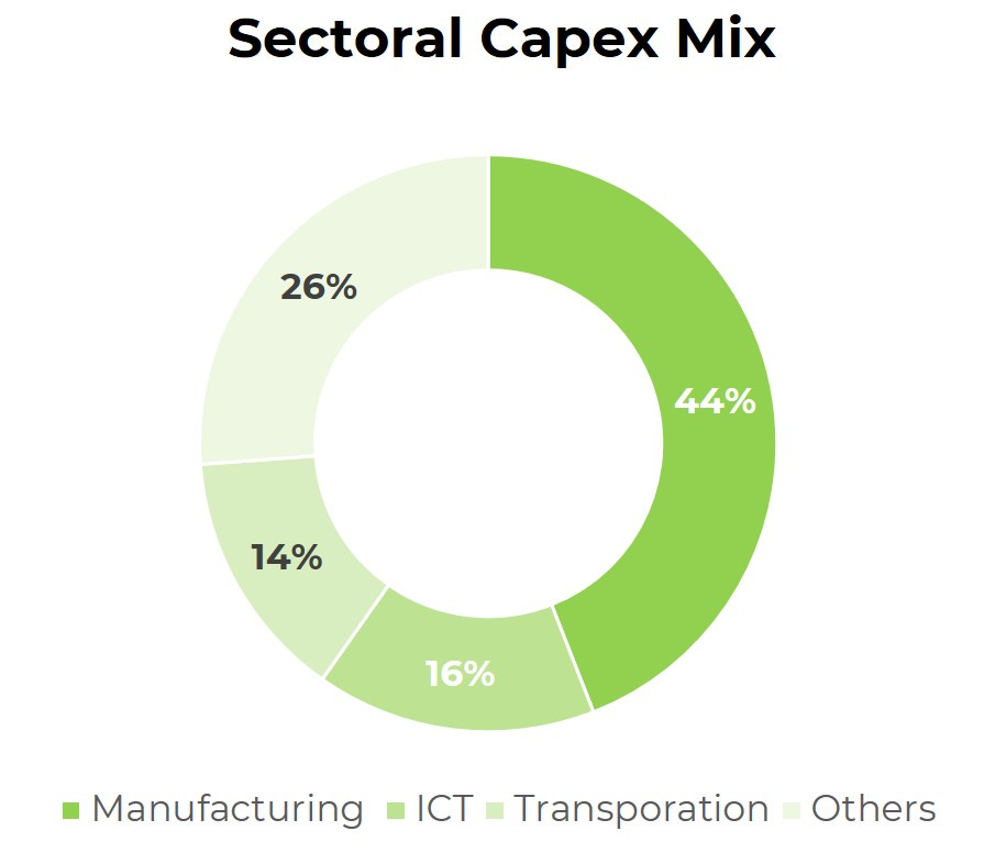 According to the MoSPI forward-looking survey for FY2024–25, the manufacturing sector leads capex plans, accounting for 43.8% of total intended private capital spending . This dominance reflects a shift toward capacity expansion in areas such as electronics manufacturing, consumer goods, machinery, autos, and food processing.