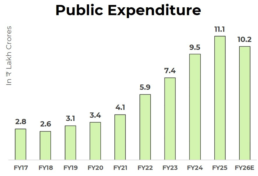 India is entering a high-growth capex cycle, supported by both public infrastructure investments and a rising wave of private sector spending. According to ministry of Finance, Union Budget 25 has allocated the capital expenditure of 10.18 lakh crore towards capital expenditure (Capex) to promote economic growth. This capex marks an 8.4% decrease from the last year's capex of 11.21 lakh crore.