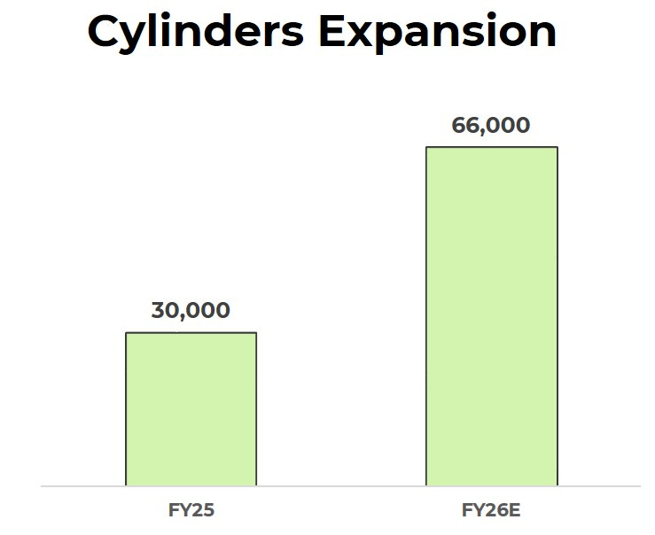 A core priority behind such big capex is expanding composite LPG and CNG cylinder manufacturing. When CNG expansion is coming up, where we are investing ₹125 crores, which almost ₹80-85 crores have been done, equipment is going to arrive in this current financial year and the separate plant will be ready. The company's existing capacity of CNG is 480 cascades and 600 cylinder cascades so the total is 1080 cascade. In terms of the cylinder it is 30,000 cylinders , which is going to be increased to 66,000 cylinders.