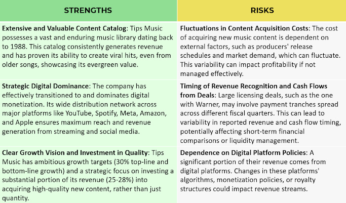 Investment in Quality Content: For FY 2026, Tips plans to invest in the range of 25% to 28% of its revenue in acquiring new, high-quality music content. This strategic focus on quality over quantity is expected to drive future success.