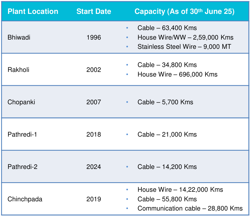 Its six state-of-the-art manufacturing facilities are spread across Rajasthan and Dadra & Nagar Haveli, with dedicated PVC compound plants at Harchandpur and Dapada for backward integration. A seventh greenfield plant is coming up at Sanand, Ahmedabad, the largest bet in KEI’s growth journey, with the first phase of capex scheduled to go live by September 2025.