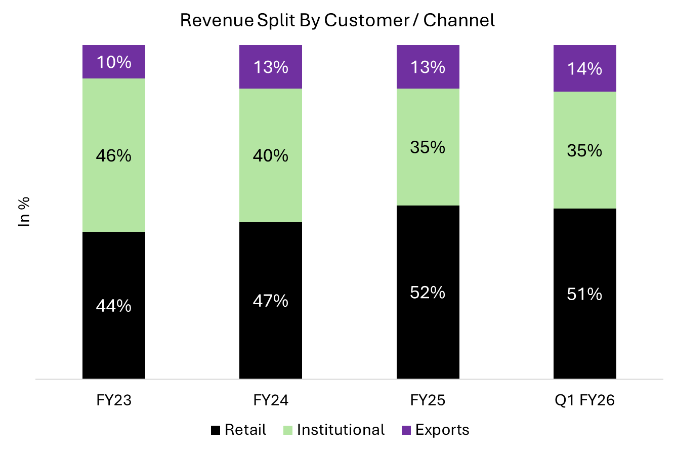 Retail sales stood at ₹1,325 crore in Q1 FY26, growing at over 25% annually.